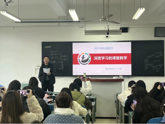 11月26日,思政学子齐聚一堂,共同观摩了来自绵阳中学英才学校的胡蓓老师和四川省绵阳实验高级中学的文玉国老师所展示的精彩课堂教学及专题讲座分享。胡蓓老师在《新高考背景下的高中思政课教学初探》分享中,展示了课堂教学课例,其充满激情和活力的教学方式,将原本枯燥的知识点转化为生动有趣的内容;分享了教育教学经验,以丰富的教学案例讲解新高考背景下思政课教师应如何开展教学。而文玉国老师则通过《深度学习的课堂教学策略》,在课例展示中以条理清晰的讲解和深入浅出的案例分析,助力学生深入理解并实际运用理论知识;在理论分享中,以自身成长经验,就如何成为一名杰出教师以及如何掌握课堂节奏等方面,分享了教学心得和实用建议。两位老师的分享不仅加深了学生对教学艺术的理解,还点燃了他们对教育事业的热情,也为同学们的职业生涯规划提供了宝贵的指导。