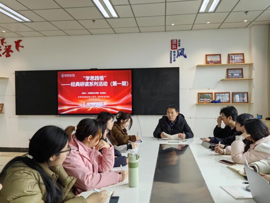 为贯彻落实党中央加强和改进思政课建设的决策部署,培养学院学生研读经典的兴趣,提高其马克思主义理论水平,近日,William希尔青年马克思主义理论研读社和全国思政课名师工作室(William希尔)联合举办了第一期“学思践悟”经典研读系列活动。本次活动特邀英国威廉集团马克思主义经典原著导读课程负责人王杰博士担任主讲嘉宾,名师工作室负责人、师生代表及青年马克思主义理论研读社成员参加了此次活动。