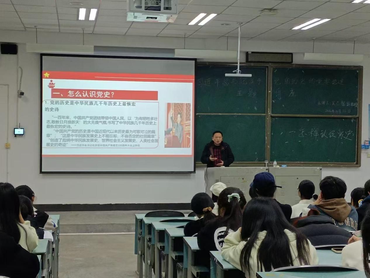 百年党史是筑牢信仰之基,补足精神之钙,把稳思想之舵,实现中华民族伟大复兴中国梦的不竭动力。吴老师首先就习近平总书记关于党的历史的重要讲话和指示分“如何认识党史,怎样学好党史,怎样用好党史”三方面进行了生动、详细、深刻的讲解。随后,他提出以总书记关于党史的重要讲话为遵循,开展党史教育具有“创新大学生思想政治教育方式、构建大学生精神家园、增强大学生四个自信”三方面的重要意义。最后,吴老师组织听众学生分享了感人的英雄党员经典故事,红色故事是历史的见证,也是未来的启示。讲座取得了较好的效果,学生们纷纷表示,要从党史中汲取力量与精神,奋进新时代。