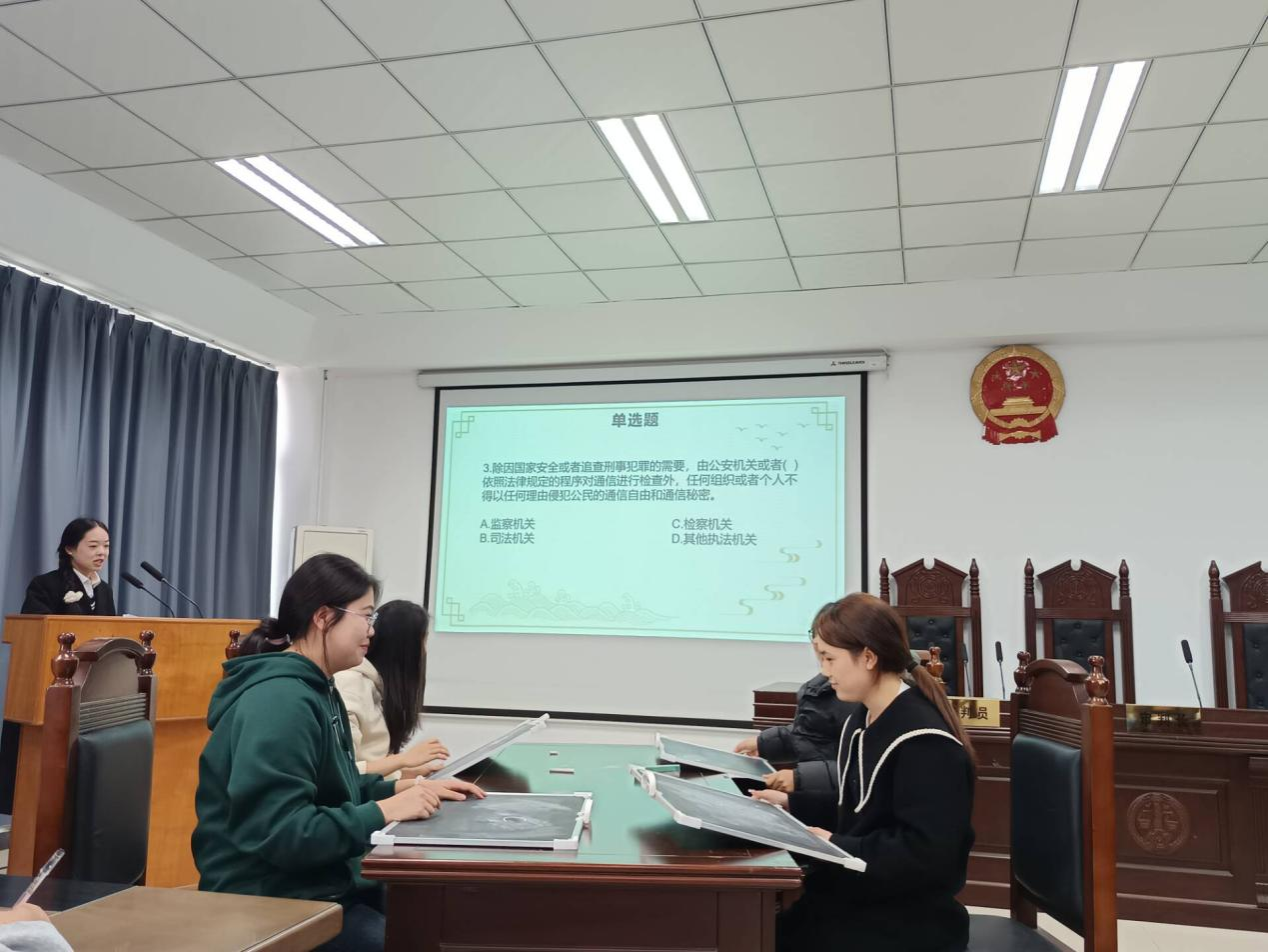 此次比赛旨在宣传宪法知识,弘扬宪法精神,提升同学们的宪法意识,进一步推动校园法治文化建设。竞赛流程参考省级决赛设置,内容涵盖我国的政治制度、宪法的基本原则、公民的基本权力与义务等多个方面,全面考察参赛选手的宪法知识储备和应用能力。比赛现场,各位参赛选手冷静思考、认真答题,自信发挥,凭借扎实的宪法知识和沉着冷静的思考,充分展示出马院学子对宪法的深刻理解和坚定信仰。经过激烈角逐,2022级4班学生易国禧以对宪法知识深刻的理解和准确的把握答对所有竞赛题目脱颖而出。